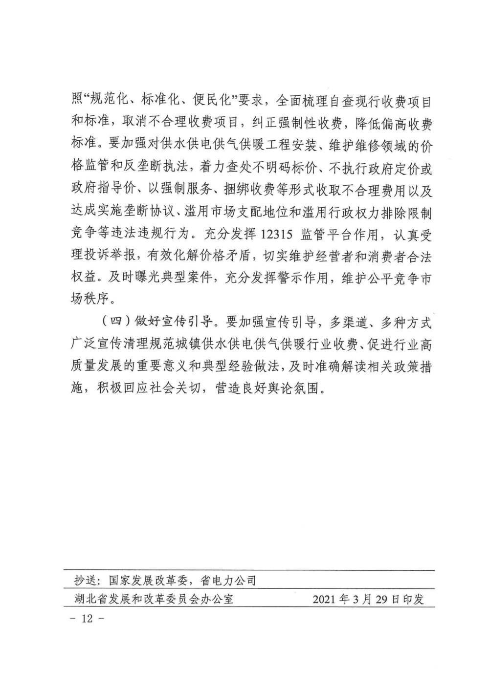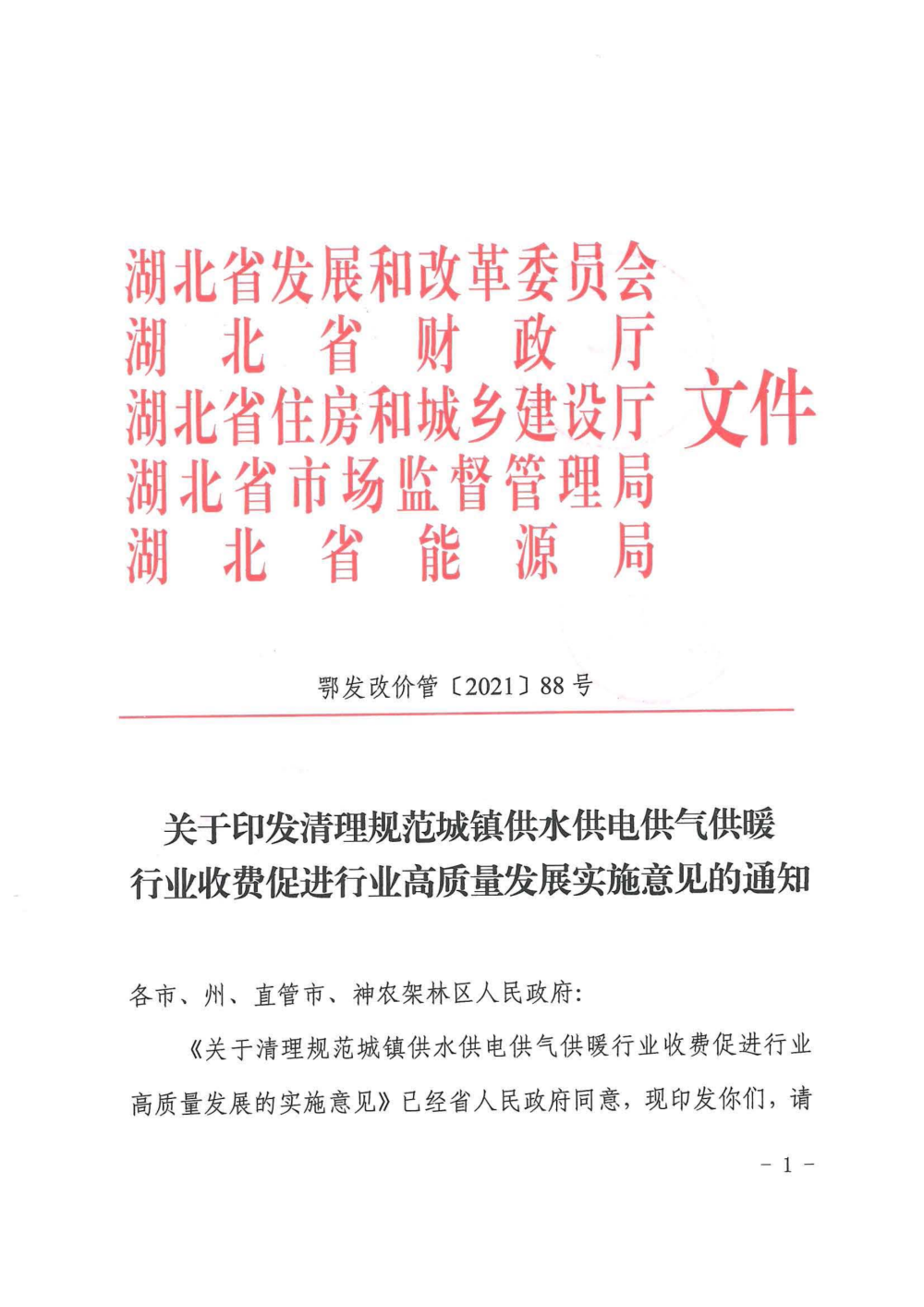 關(guān)于印發(fā)清理規(guī)范城鎮(zhèn)供水供電供氣供暖行業(yè)收費促進(jìn)行業(yè)高質(zhì)量發(fā)展實施意見的通知