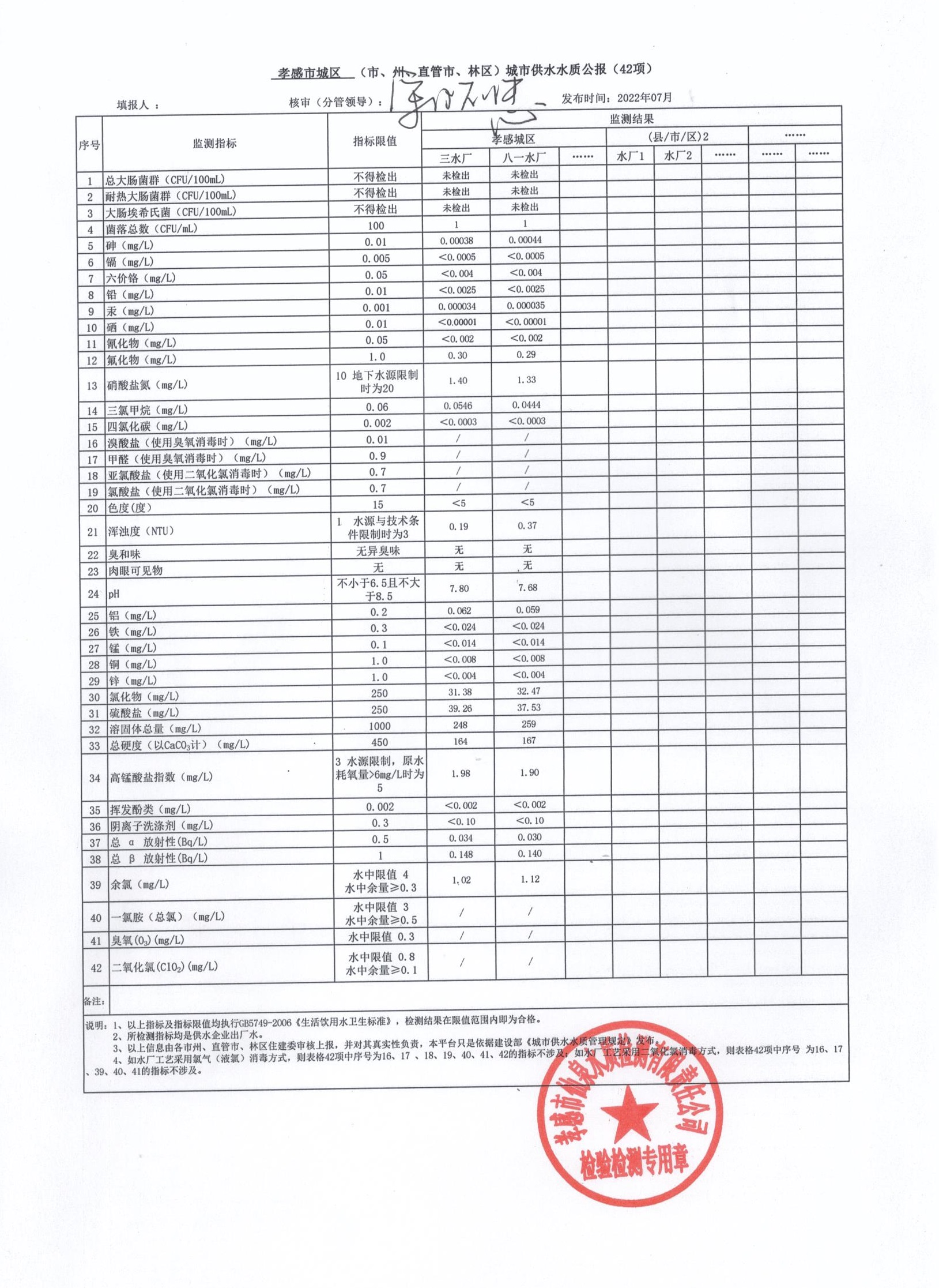 2022年7月水質(zhì)報(bào)告
