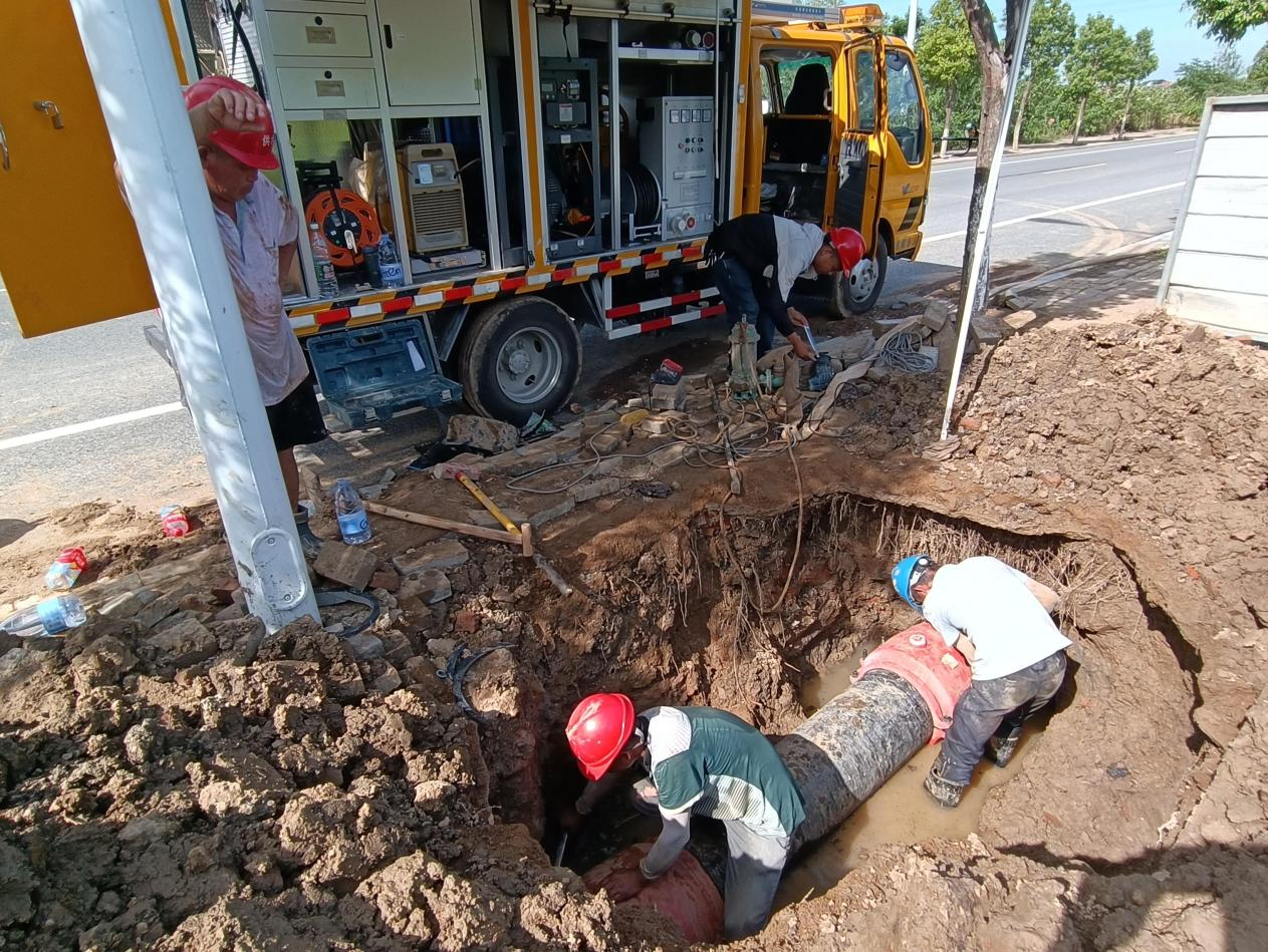 7月22日上午,客服部接到市民反映:位于京廣大道與大智路交匯附近的一條水管爆管,破損處持續(xù)噴水,希望能及時處理。接到消息后,公司立即組織搶修人員,第一時間趕赴現(xiàn)場關(guān)閥止水開展搶修。