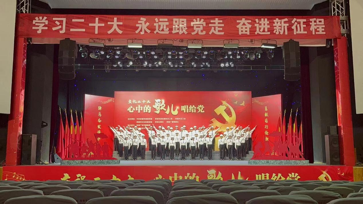 11月18日,我公司員工魯佳、劉琴作為澴川國投合唱隊(duì)員,參加了由中共孝感市委宣傳部、市委直屬機(jī)關(guān)工委、市總工會(huì)、市文化和旅游局、孝感日?qǐng)?bào)社、孝感廣播電視臺(tái)主辦的“慶祝二十大 心中的歌兒唱給黨”孝感云傳唱活動(dòng)。