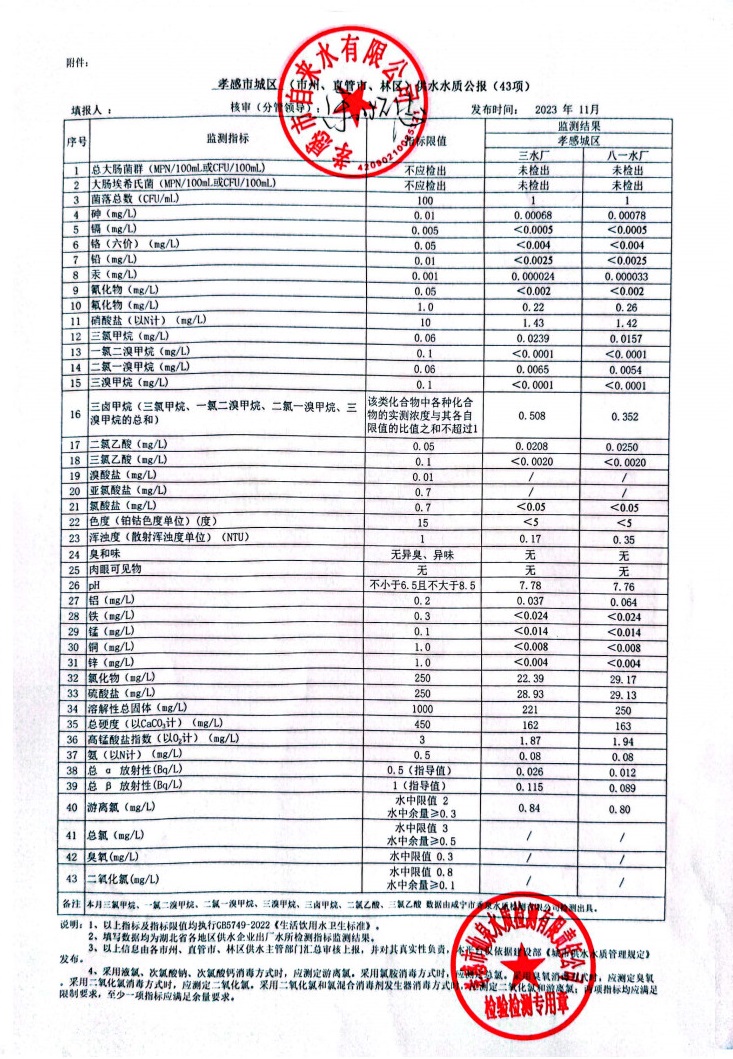 2023年11月水質報告
