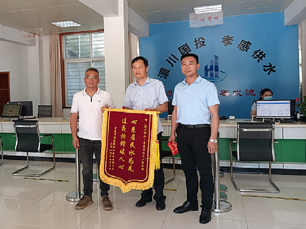 “非常感謝自來(lái)水公司,快速精準(zhǔn)地定位了漏點(diǎn),及時(shí)維修,保障了小區(qū)居民正常用水,幫我們解決了一個(gè)大難題!”7月5日上午,民邦熙公館小區(qū)物業(yè)工作人員將印有“心系居民水為先 連夜搶修暖人心”的錦旗送到了孝感市自來(lái)水有限公司,對(duì)我公司心系群眾、為民解憂,為用戶(hù)提供優(yōu)質(zhì)供水服務(wù)表示衷心感謝。