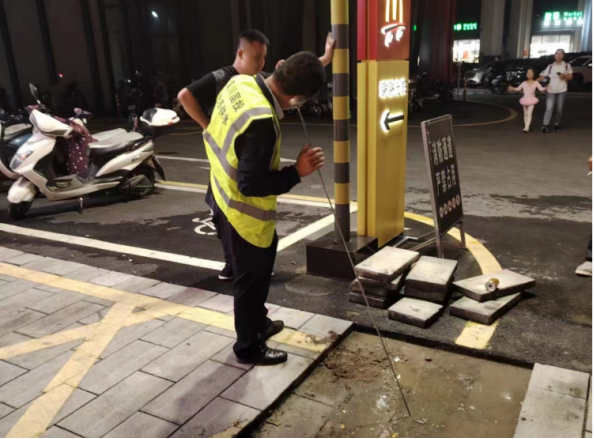 7月2日下午5點(diǎn)左右,公司客服熱線接到用戶(hù)反映,北京路民邦熙公館小區(qū)突然停水。客戶(hù)服務(wù)部工作人員第一時(shí)間來(lái)到現(xiàn)場(chǎng),經(jīng)現(xiàn)場(chǎng)勘查發(fā)現(xiàn),小區(qū)進(jìn)水管道漏水,初步懷疑是內(nèi)部管道存在漏點(diǎn),造成停水。