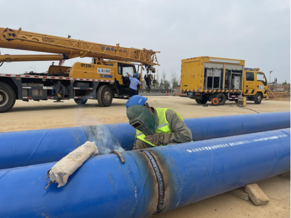 此次管線遷改共需對(duì)2條道路(復(fù)興大道、縱九路)4個(gè)路口共計(jì)1600余米的供水管線進(jìn)行遷改,該工程工期短、地下管線情況復(fù)雜,施工難度教高。為高效配合完成京港澳高速公路改擴(kuò)建工程,全力保障復(fù)興大道、縱九路及周邊企業(yè)、用戶正常用水,公司克服一切困難,對(duì)高速擴(kuò)建施工實(shí)施24小時(shí)全天候配合保障,并提前一個(gè)月組織專業(yè)技術(shù)人員多次進(jìn)行現(xiàn)場踏勘,細(xì)化管線施工連接點(diǎn)位置、停水時(shí)間、焊接點(diǎn)位和方式,制定周密管線遷改接水方案,為新舊管道連接敷設(shè)做好了充足準(zhǔn)備。
