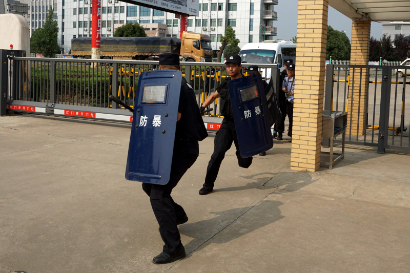 5月17日15時(shí)30分,一來(lái)歷不明的“暴恐分子”突然闖入我公司三水廠(chǎng)廠(chǎng)區(qū),意圖持刀“行兇”;水廠(chǎng)保安人員迅速報(bào)警,并利用防暴器械與其周旋。隨后公安特勤人員快速趕到現(xiàn)場(chǎng),一舉將“暴恐分子”包圍制服,果斷處置了一場(chǎng)突發(fā)“暴恐”事件。
