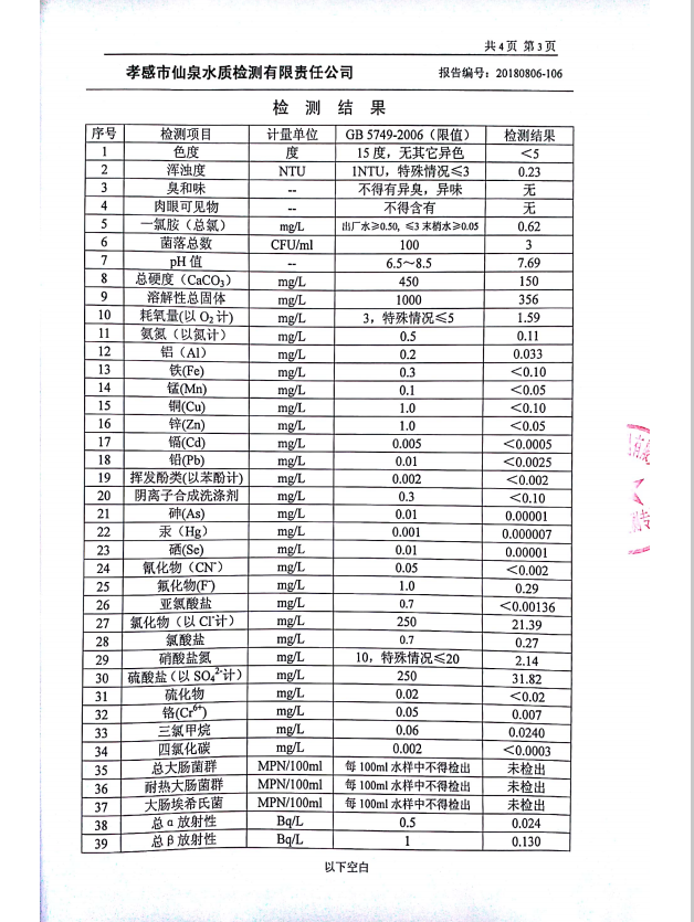 2018年8月水質(zhì)報(bào)告