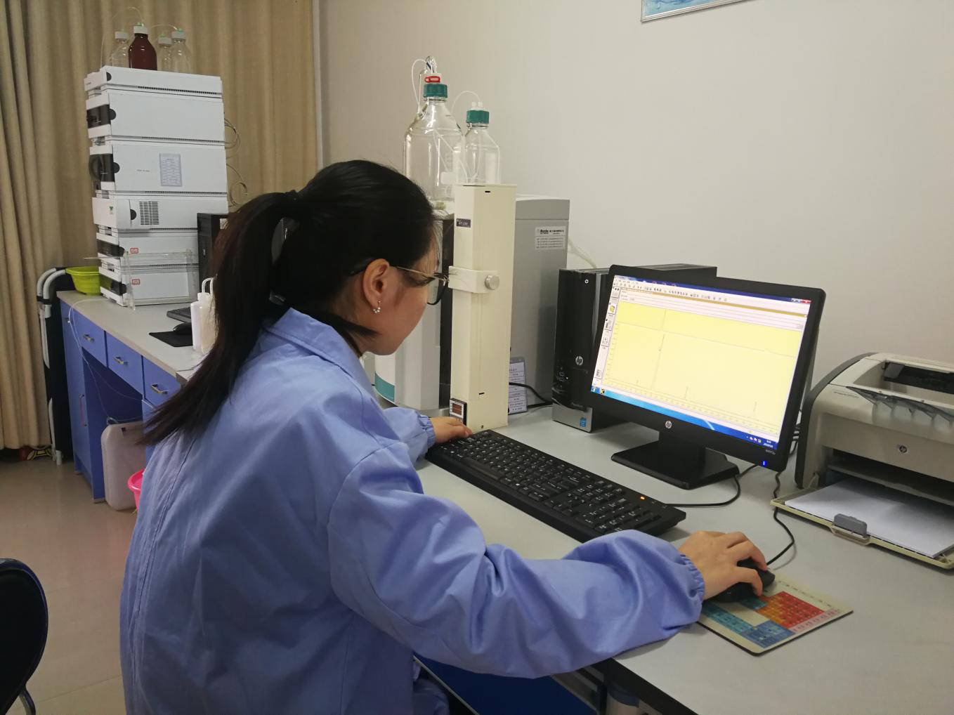 水質(zhì)檢測(cè)是安全供水的前提,更是安全供水的基礎(chǔ)。2015年,公司組建了仙泉水質(zhì)檢測(cè)有限責(zé)任公司,投入大量資金購(gòu)買(mǎi)原子吸收分光光度計(jì)、原子熒光光度計(jì)、氣相色譜儀、離子色譜儀等專業(yè)儀器設(shè)備,承擔(dān)公司出廠水、源水水質(zhì)日檢、半月檢、月檢及年檢等相關(guān)水質(zhì)檢測(cè)工作。通過(guò)對(duì)水質(zhì)的濁度、PH值,余氯等指標(biāo)數(shù)據(jù)監(jiān)測(cè)結(jié)果與水質(zhì)在線檢測(cè)儀比對(duì)數(shù)值,時(shí)刻掌握數(shù)據(jù)變化趨勢(shì),加強(qiáng)對(duì)出廠水的常規(guī)檢測(cè)頻次,密切關(guān)注水質(zhì)變化,全力保證水質(zhì)安全。