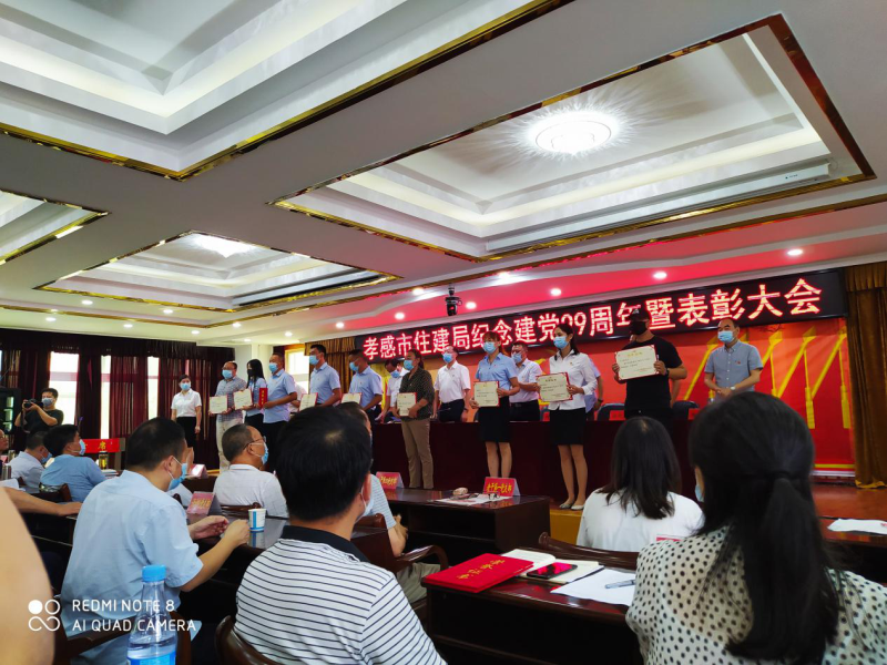 2020年7月1日,市住建局召開建黨99周年紀念大會暨表彰優秀共產黨員和黨務工作者大會,我公司劉威、涂明海、劉要華、姜爾恩四名在職黨員和退休黨員丁鳳華受表彰,獲評孝感市住建系統優秀共產黨員,鄧少芬獲評孝感市住建系統優秀黨務工作者。